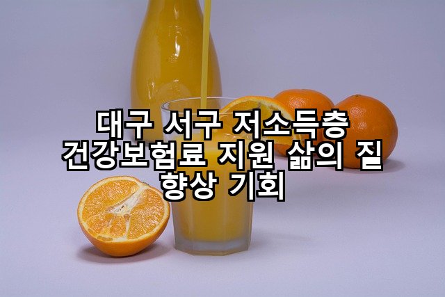 | 지원대상 | 대구 서구 지역가입자 중 의료급여 수급권자가 아닌 자로서 월 부과금액(노인장기요양보험료 포함)이 보건복지부 최저보험료 이하인 세대 (만 65세 이상 노인으로만 구성된 세대, 장애인복지법에 따라 등록한 장애인이 있는 세대, 한부모가족지원법에 따른 한부모세대 및 조손가구, 만 18세 미만의 아동으로만 구성된 세대, 희귀난치성질환 및 만성질환자가 있는 세대, 그 밖에 대구광역시 서구청장이 인정한 세대) |